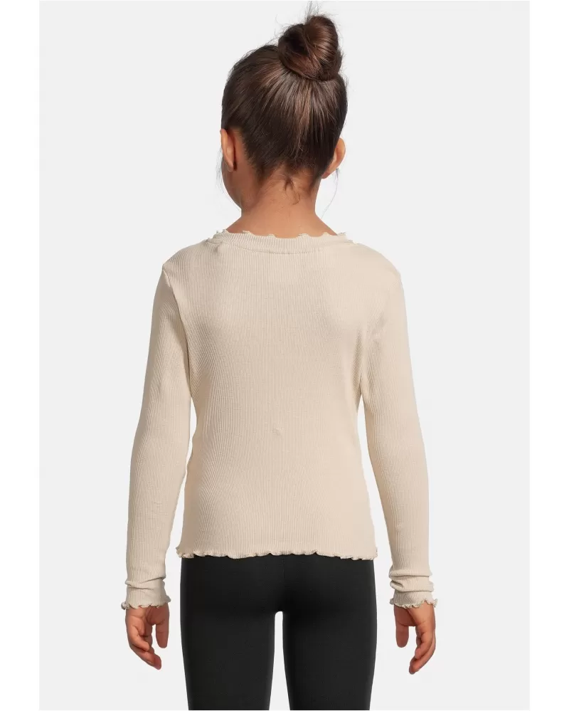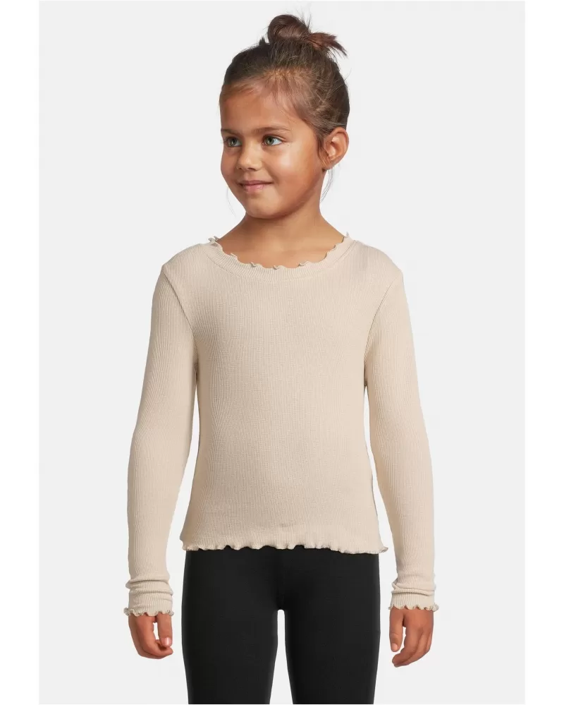 Dětské triko URBAN CLASSICS je stylový kousek, který zaujme svojí jemností i praktičností. Má dlouhé rukávy, je vyrobeno ze žebrované bavlněné tkaniny (97 % bavlna, 3 % elastan, cca 180 g/m²), takže je pohodlné, mírně přizpůsobivé a pohodlné pro pohyb. Lem na rukávech, lemu i výstřihu má zvlněný okraj, který dodává triku moderní vzhled.
