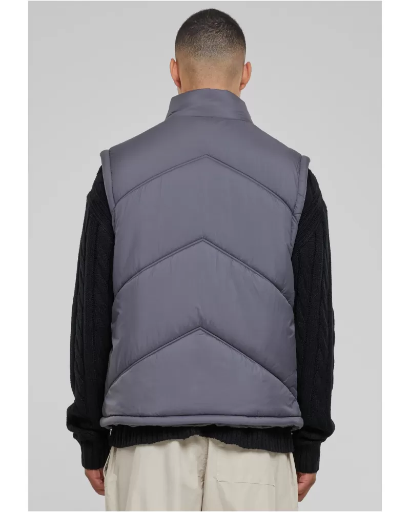 Tato nápadná pánská vesta vyrobená s prošíváním ve tvaru šípu vyzařuje sebevědomí. Dále je vybavena stojáčkem, bočními kapsami i vnitřní kapsou a k zapínání využívá skrytý přední zip. Střih je pravidelný a elastické manžety dotvářejí styl. Vestu lze upravit pomocí šňůrek a zarážky na lemu. Pánská taftová vesta je podšitá taftem a vyrobena z odolného Terylenu.